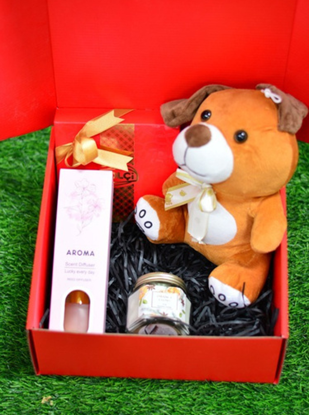 Surprise your loved one with Cute Affections Gift Box 💝 A sweet combination of teddy bear, premium body spray and scented candle, perfect for Valentine’s Day and romantic gift delivery in Kenya.
